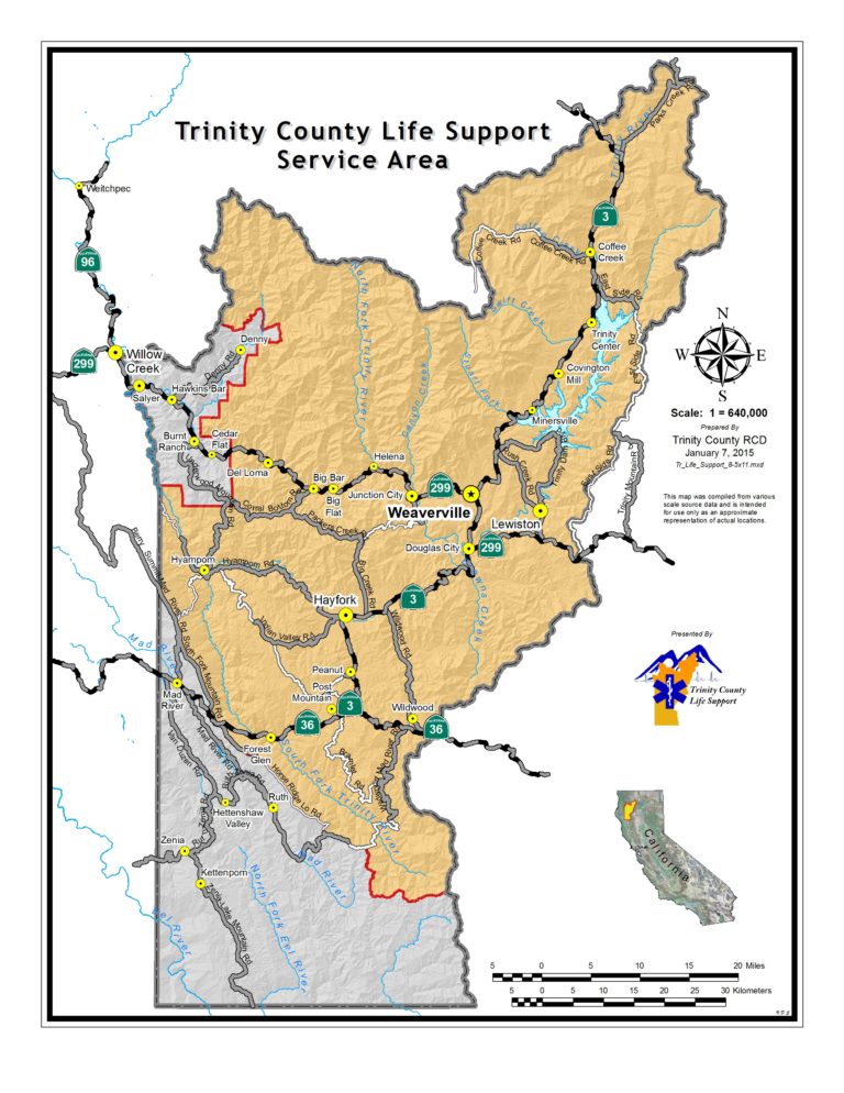 Trinity Life Support Community Service District’s Mission is to provide the highest level of advanced life support pre-hospital emergency medical services to our community, and to assist in the education and training of our local fire departments, schools, and the general public on health and safety issues.
